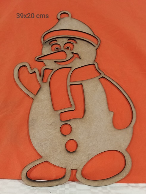 Espectacular colgante de 39×20 cms con la silueta de un alegre Muñeco de Nieve con gorro y bufanda, fabricado en madera MDF con corte láser. Su gran tamaño es perfecto para puertas o paredes, dando un toque acogedor y festivo a tu decoración invernal. ¡Ideal para manualidades DIY!