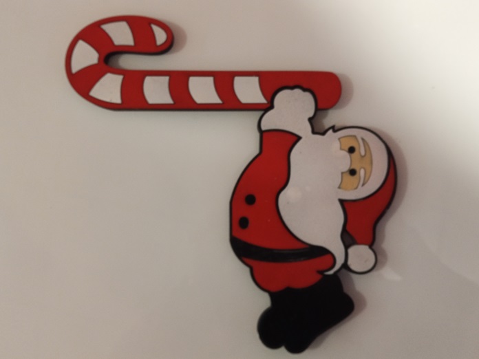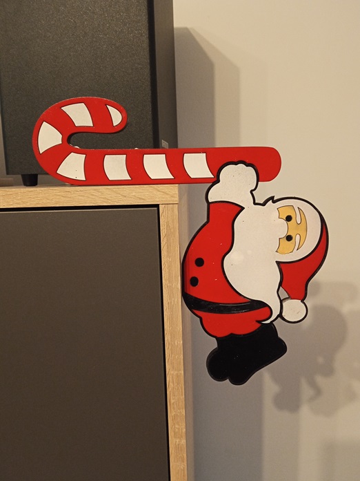 Diseño Funcional para Esquinas: Esta pieza está pensada para ser colocada en el ángulo de una pared, el borde de un estante, una repisa o un marco de puerta. La forma en ‘L’ que crean Papá Noel y el caramelo maximiza el impacto visual en espacios pequeños.