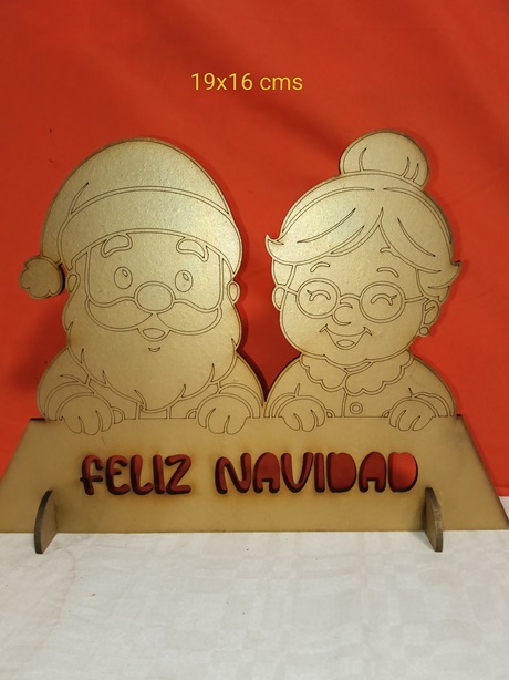 Figura Sobremesa Navidad 🎅👵 19×16 cm. Papá Noel y Abuela con mensaje «FELIZ NAVIDAD». En madera MDF cortada con láser, pintada y pegada a mano 🎨. Diseño 3D artesanal con soporte. ¡El toque único y cálido para tu mesa! 🎄✨