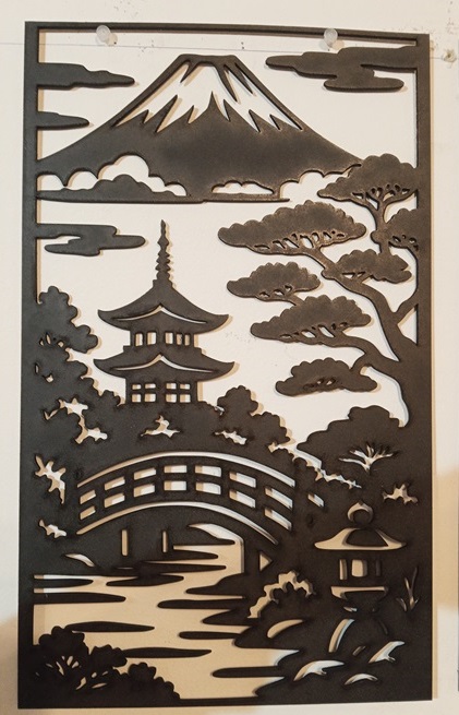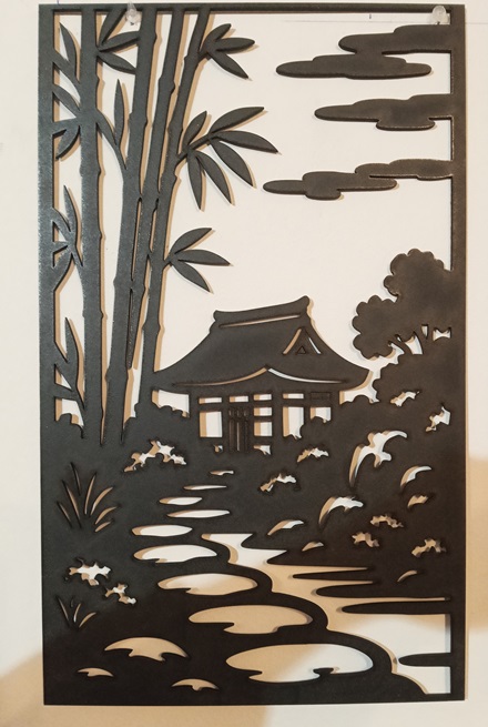 Redecora con alma con este impresionante mural de 120×48 cm. Formado por 4 paneles de madera MDF negra de 3 mm, su diseño calado con láser resalta en cualquier fondo, aportando un aire de serenidad oriental a tu hogar. 🎋✨