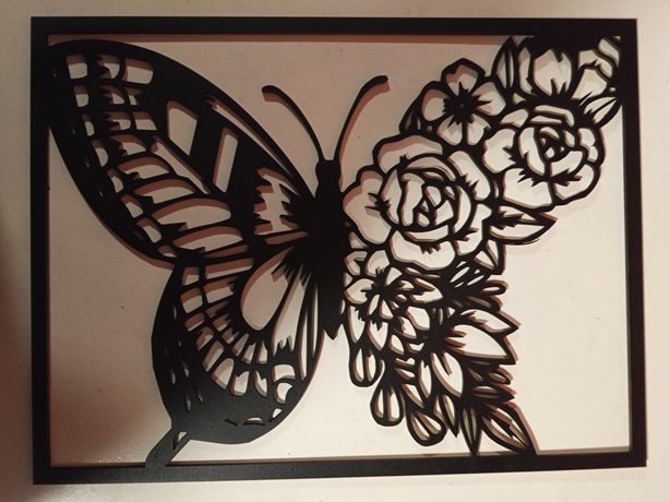 Transforma cualquier rincón en un jardín eterno con esta espectacular pieza de arte mural. Este diseño, realizado con corte láser de alta precisión en madera MDF de 3 mm, fusiona la majestuosidad de una mariposa con la belleza orgánica de las flores, creando un símbolo de transformación y crecimiento para tu pared.