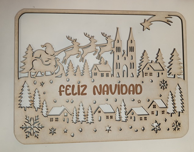 Descripción: Dale a tu hogar un toque de calidez y tradición con este espectacular mural de Navidad. Esta pieza artística ha sido creada mediante corte láser de alta precisión, logrando una silueta detallada que cuenta una historia en cada rincón.