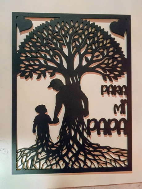 Inmortaliza el vínculo eterno entre padres e hijos con este espectacular mural decorativo. Esta pieza de arte calada, realizada con corte láser de alta fidelidad, fusiona la figura humana con la naturaleza, simbolizando que el amor de un padre es la raíz que sostiene y guía el crecimiento de sus hijos.