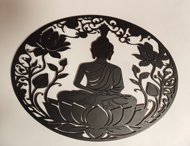 Fabricación de Precisión: Fabricado con resistente madera MDF y perfilado con tecnología de corte láser de alta definición. Esta técnica asegura que cada pétalo, curva y detalle del rostro de Buda sea nítido y perfecto.