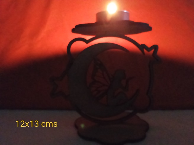 Elaborado con madera MDF de alta calidad al natural (sin pintar)y la precisión excepcional del corte láser, este portavelas presenta una silueta exquisitamente detallada de un hada o Campanilla sentada grácilmente sobre una luna creciente, rodeada de estrellas. El diseño de dos alturas es funcionalmente elegante: la base inferior asegura la estabilidad, mientras que la plataforma superior está diseñada para sostener una vela o un pequeño objeto decorativo.