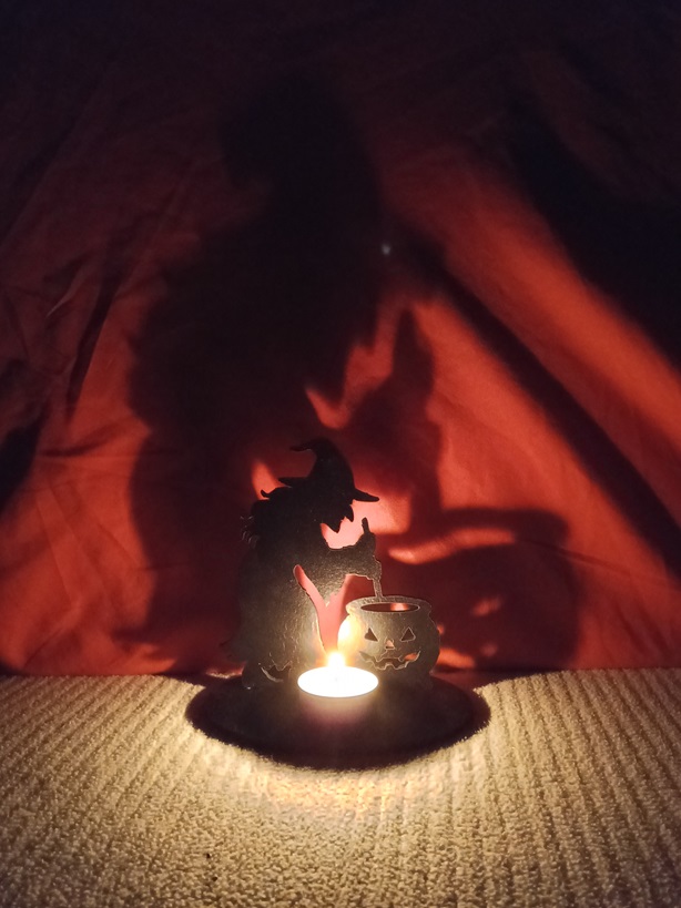 Portavelas Silueta Bruja y Caldero: Magia y Sombras para tu Halloween