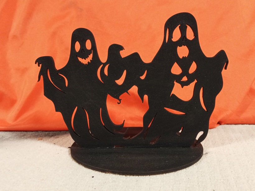 ¡Portavelas MDF de sombras con un Dúo de Fantasmas! 👻👻 Proyecta una sombra doble y misteriosa. Diseño cortado a láser y montado a mano. Ideal para decoración Halloween 🎃. Medidas: 13 x 11 x 13 cms. ¡Perfecto para tu fiesta de miedo! 🕯️